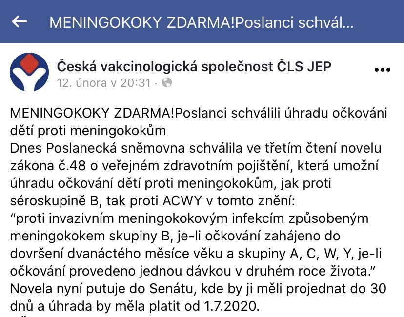 - Očkování proti závažnému meningokokovému onemocnění: